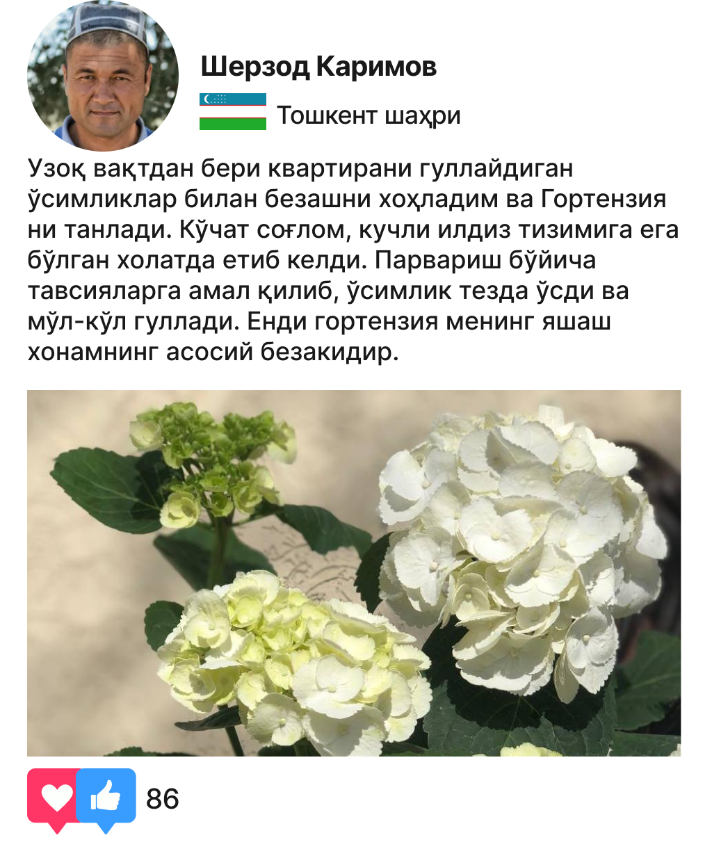 Ўзингизнинг эксклюзив гортензияларингизни ўстиринг ва ҳар куни чиройли гуллардан баҳраманд бўлинг!