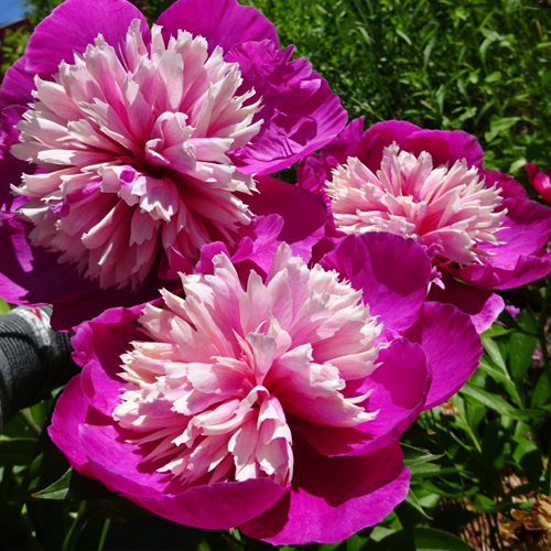 - диаметри 15 см бўлган гулли икки рангли пион, ранги оч пушти, ёрқин қирмизи ранг билан биргаликда (расмга қаранг);