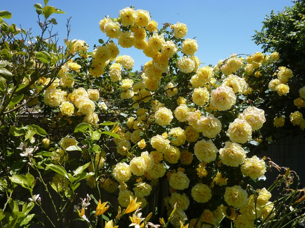 Ўзининг гўзаллиги ва сояларнинг бойлиги билан ҳайратга соладиган ўрама атиргулларнинг катта ва ёрқин гулларидан роҳатланинг.